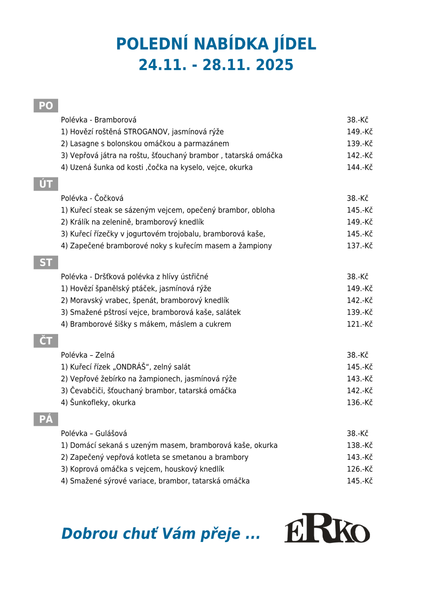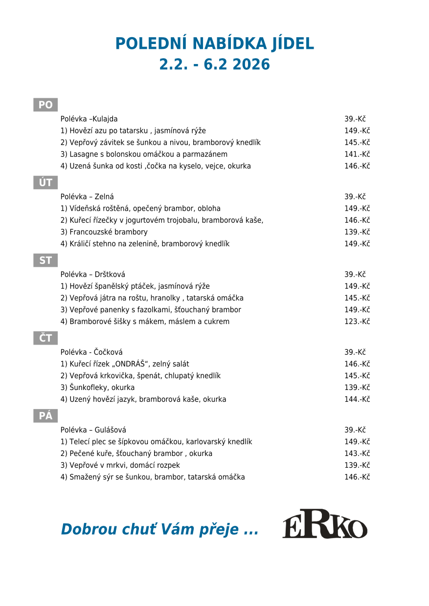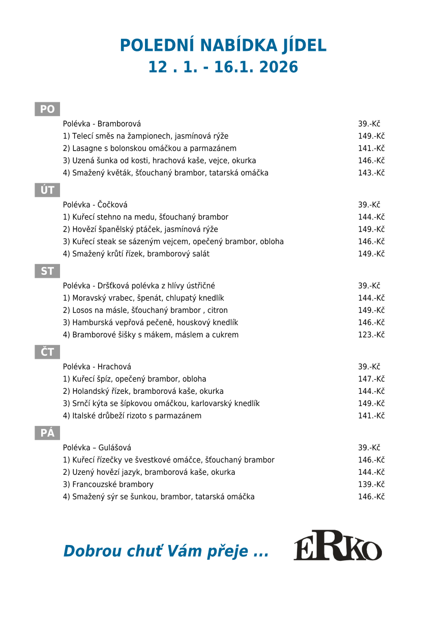 Aktuální jídelní lístek https://www.spolecna-reklama.cz/erko-jidelna/